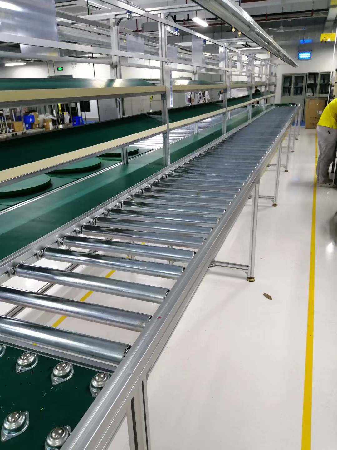 動(dòng)力滾筒線考慮鏈條抗拉強(qiáng)度,最長(zhǎng)單線長(zhǎng)度一般不超過(guò)10米。