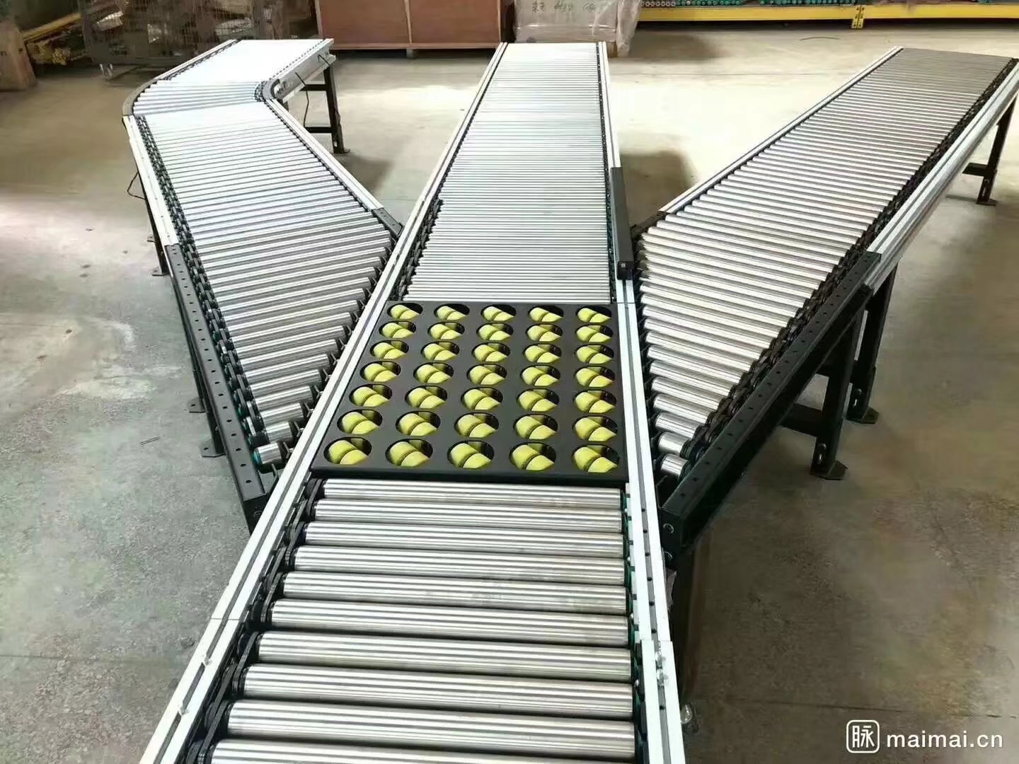 為確保貨物能夠平穩(wěn)輸送,必須在任何時間點都至少有三只滾筒與輸送物保持接觸。對軟袋包裝物必要時應(yīng)加托盤輸送。